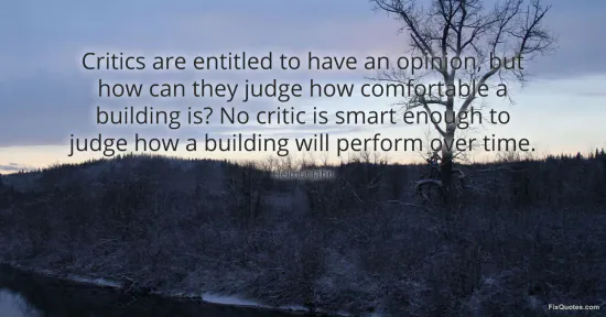 "Critics are entitled to have an opinion, but how can they judge how comfortable a building is? No critic is smart enough to judge how a building will perform over time." FixQuotes, 17 Jan. 2026, https://fixquotes.com/quotes/critics-are-entitled-to-have-an-opinion-but-how-53937/. Accessed 13 Feb. 2026.