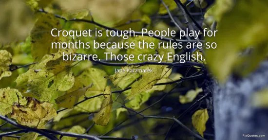 Kaczmarek, Jane. (2026, January 16). Croquet is tough. People play for months because the rules are so bizarre. Those crazy English. FixQuotes. https://fixquotes.com/quotes/croquet-is-tough-people-play-for-months-because-121782/
