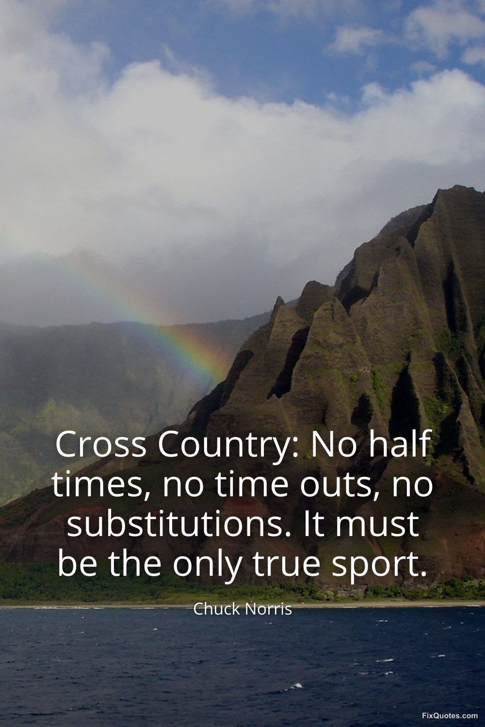 Norris, Chuck. (2026, March 20). Cross Country: No half times, no time outs, no substitutions. It must be the only true sport. FixQuotes. https://fixquotes.com/quotes/cross-country-no-half-times-no-time-outs-no-186223/