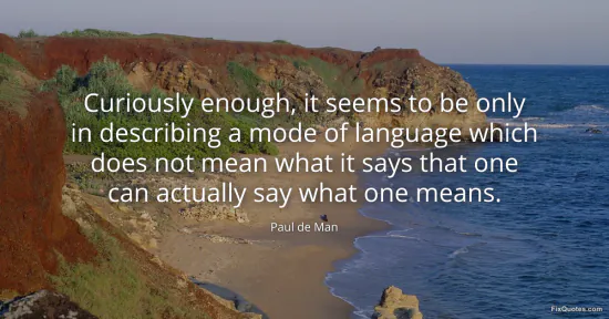 Man, Paul de. "Curiously enough, it seems to be only in describing a mode of language which does not mean what it says that one can actually say what one means." FixQuotes. January 15, 2026. https://fixquotes.com/quotes/curiously-enough-it-seems-to-be-only-in-109069/.