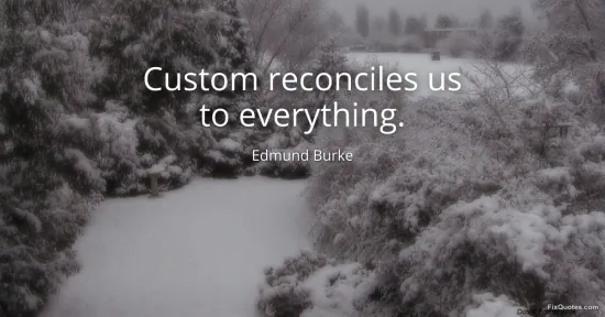 Burke, Edmund. "Custom reconciles us to everything." FixQuotes. January 18, 2026. https://fixquotes.com/quotes/custom-reconciles-us-to-everything-16852/.