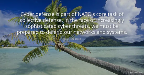 Stoltenberg, Jens. (2026, January 15). Cyber defense is part of NATO's core task of collective defense. In the face of increasingly sophisticated cyber threats, we must be prepared to defend our networks and systems. FixQuotes. https://fixquotes.com/quotes/cyber-defense-is-part-of-natos-core-task-of-172250/
