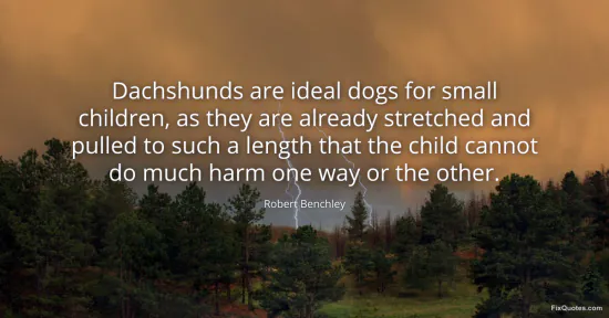 Benchley, Robert. "Dachshunds are ideal dogs for small children, as they are already stretched and pulled to such a length that the child cannot do much harm one way or the other." FixQuotes. January 15, 2026. https://fixquotes.com/quotes/dachshunds-are-ideal-dogs-for-small-children-as-171298/.