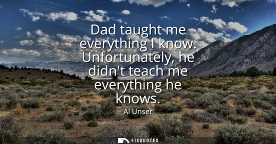 Wry and affectionate, the line captures both gratitude and the stubborn mystery of mastery. Coming from the Unser racing dynasty, it evokes a garage-side apprenticeship: long nights over setups, patient corrections on throttle control, and countless debriefs about lines, tire wear, and traffic. A father can pass down fundamentals and even the habits that breed consistency. Yet the last margins that decide championships often live beyond words, in a private reservoir of instinct, timing, and nerve that no lesson can fully transmit.