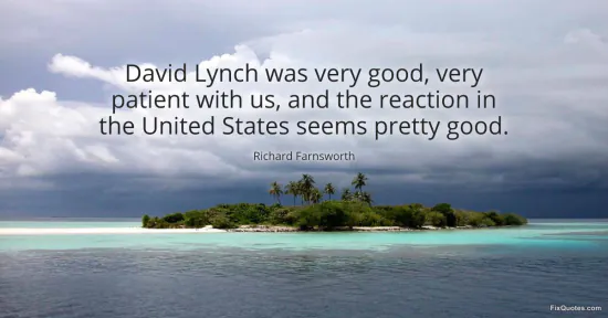 Farnsworth, Richard. (2026, January 16). David Lynch was very good, very patient with us, and the reaction in the United States seems pretty good. FixQuotes. https://fixquotes.com/quotes/david-lynch-was-very-good-very-patient-with-us-105773/