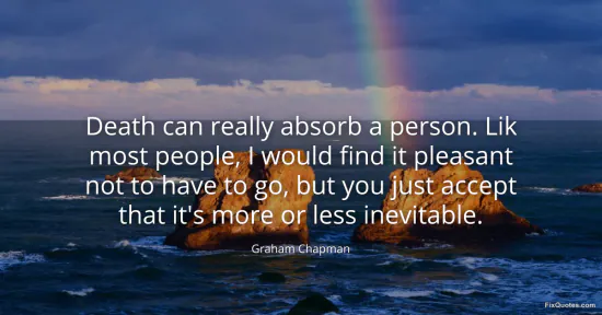 Chapman, Graham. "Death can really absorb a person. Lik most people, I would find it pleasant not to have to go, but you just accept that it's more or less inevitable." FixQuotes. January 16, 2026. https://fixquotes.com/quotes/death-can-really-absorb-a-person-lik-most-people-111374/.