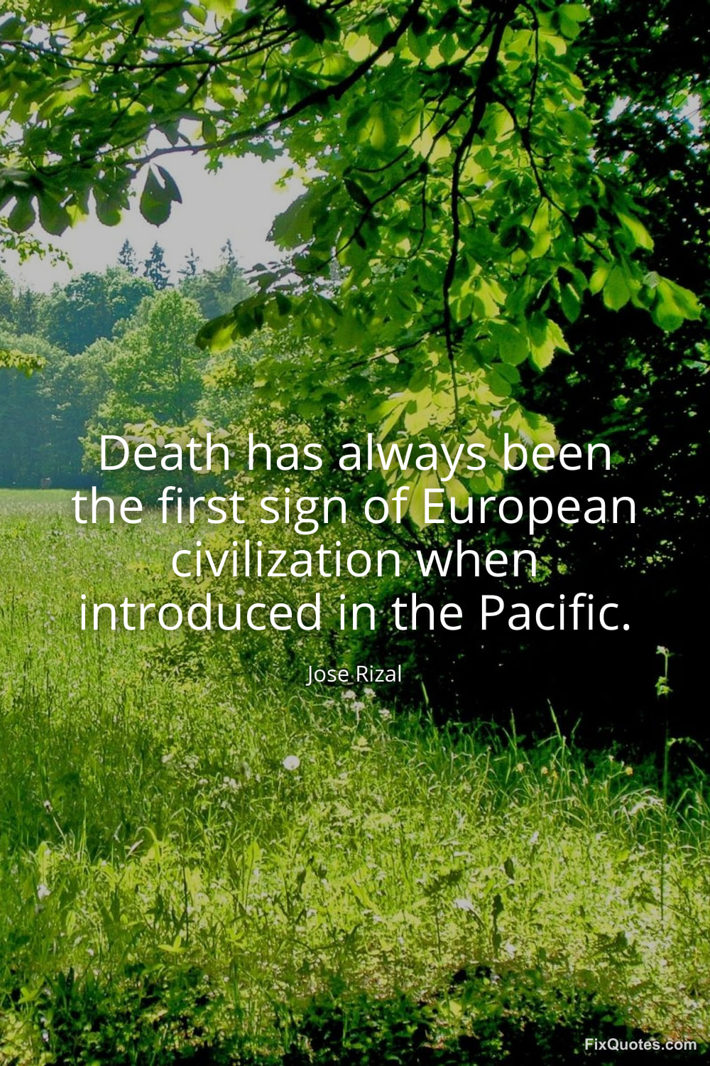 Rizal, Jose. (2026, February 10). Death has always been the first sign of European civilization when introduced in the Pacific. FixQuotes. https://fixquotes.com/quotes/death-has-always-been-the-first-sign-of-european-185098/