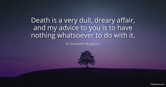 Maugham, W. Somerset. "Death is a very dull, dreary affair, and my advice to you is to have nothing whatsoever to do with it." FixQuotes. March 2, 2026. https://fixquotes.com/quotes/death-is-a-very-dull-dreary-affair-and-my-advice-2617/.