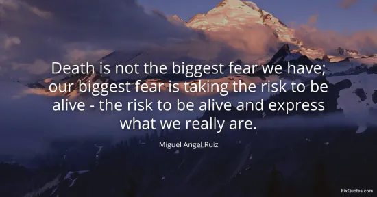 Ruiz, Miguel Angel. "Death is not the biggest fear we have; our biggest fear is taking the risk to be alive - the risk to be alive and express what we really are." FixQuotes. January 15, 2026. https://fixquotes.com/quotes/death-is-not-the-biggest-fear-we-have-our-biggest-160499/.