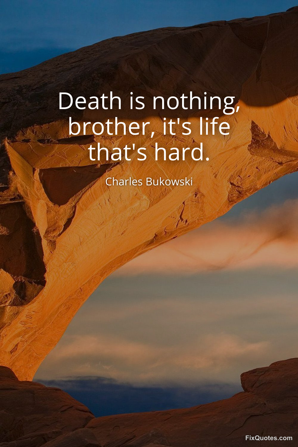 Bukowski, Charles. (2026, February 10). Death is nothing, brother, it's life that's hard. FixQuotes. https://fixquotes.com/quotes/death-is-nothing-brother-its-life-thats-hard-185153/