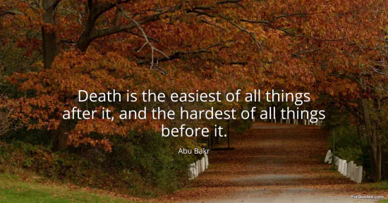 Bakr, Abu. (2026, January 15). Death is the easiest of all things after it, and the hardest of all things before it. FixQuotes. https://fixquotes.com/quotes/death-is-the-easiest-of-all-things-after-it-and-44804/