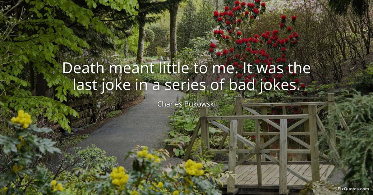 Bukowski, Charles. "Death meant little to me. It was the last joke in a series of bad jokes." FixQuotes. February 10, 2026. https://fixquotes.com/quotes/death-meant-little-to-me-it-was-the-last-joke-in-185184/.