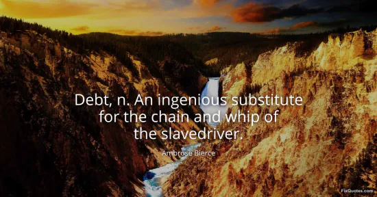 Bierce, Ambrose. (2026, January 15). Debt, n. An ingenious substitute for the chain and whip of the slavedriver. FixQuotes. https://fixquotes.com/quotes/debt-n-an-ingenious-substitute-for-the-chain-and-34413/