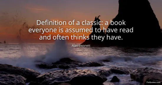 Bennett, Alan. (2026, January 17). Definition of a classic: a book everyone is assumed to have read and often thinks they have. FixQuotes. https://fixquotes.com/quotes/definition-of-a-classic-a-book-everyone-is-27657/