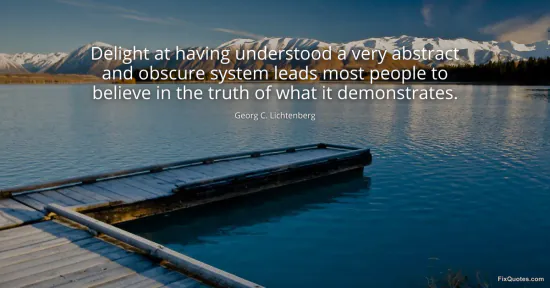 Lichtenberg, Georg C. "Delight at having understood a very abstract and obscure system leads most people to believe in the truth of what it demonstrates." FixQuotes. January 18, 2026. https://fixquotes.com/quotes/delight-at-having-understood-a-very-abstract-and-10912/.
