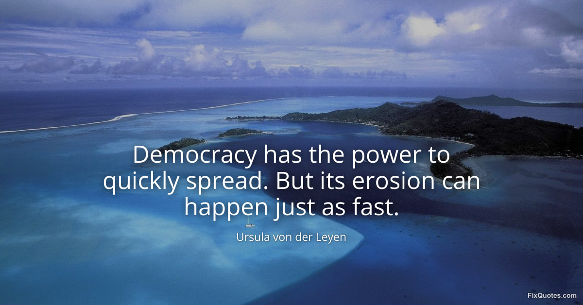 Leyen, Ursula von der. "Democracy has the power to quickly spread. But its erosion can happen just as fast." FixQuotes. January 15, 2026. https://fixquotes.com/quotes/democracy-has-the-power-to-quickly-spread-but-its-173068/.
