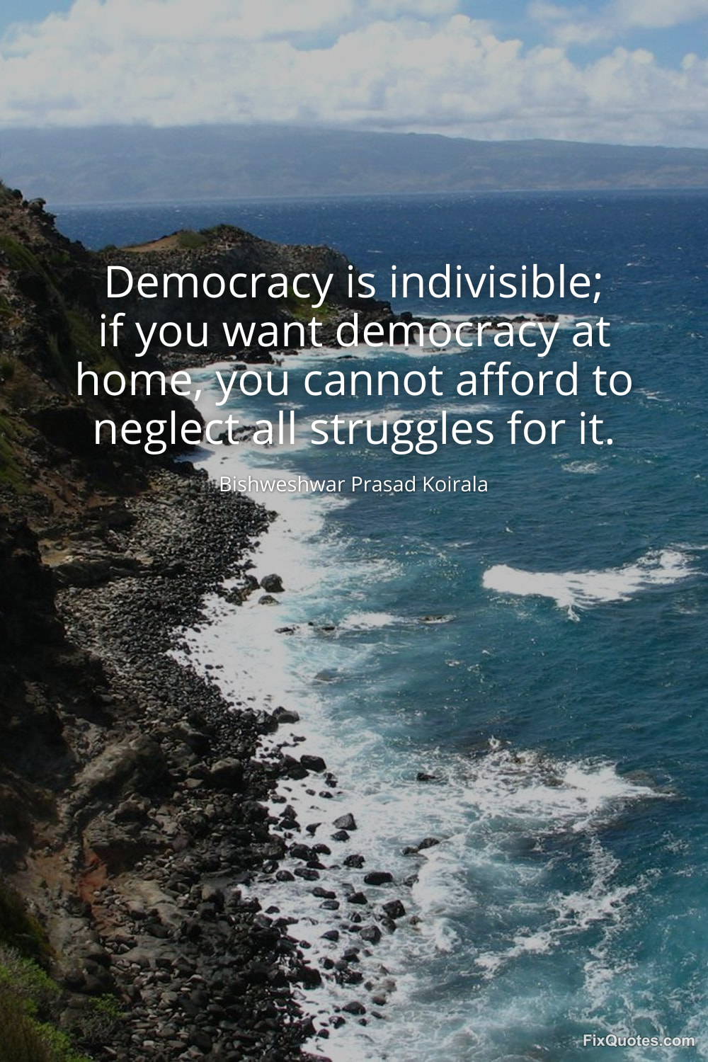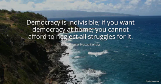 Koirala, Bishweshwar Prasad. (2026, February 15). Democracy is indivisible; if you want democracy at home, you cannot afford to neglect all struggles for it. FixQuotes. https://fixquotes.com/quotes/democracy-is-indivisible-if-you-want-democracy-at-185452/