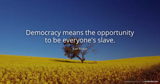 Kraus, Karl. (2026, January 15). Democracy means the opportunity to be everyone's slave. FixQuotes. https://fixquotes.com/quotes/democracy-means-the-opportunity-to-be-everyones-78388/