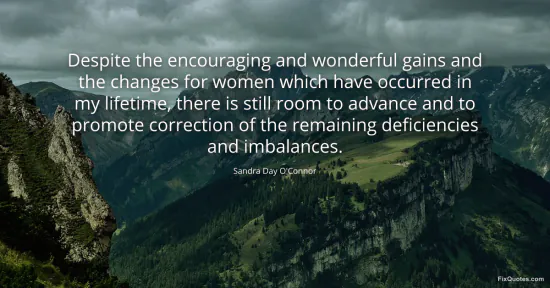 O'Connor, Sandra Day. (2026, January 16). Despite the encouraging and wonderful gains and the changes for women which have occurred in my lifetime, there is still room to advance and to promote correction of the remaining deficiencies and imbalances. FixQuotes. https://fixquotes.com/quotes/despite-the-encouraging-and-wonderful-gains-and-94570/