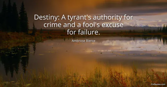 Bierce, Ambrose. "Destiny: A tyrant's authority for crime and a fool's excuse for failure." FixQuotes. January 17, 2026. https://fixquotes.com/quotes/destiny-a-tyrants-authority-for-crime-and-a-fools-34880/.