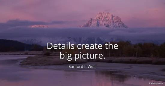 Weill, Sanford I. "Details create the big picture." FixQuotes. January 14, 2026. https://fixquotes.com/quotes/details-create-the-big-picture-154784/.