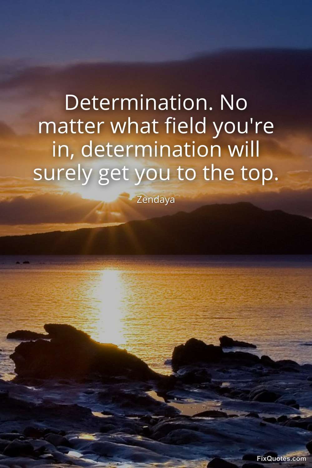 Zendaya. "Determination. No matter what field you're in, determination will surely get you to the top." FixQuotes. January 30, 2026. https://fixquotes.com/quotes/determination-no-matter-what-field-youre-in-184665/.