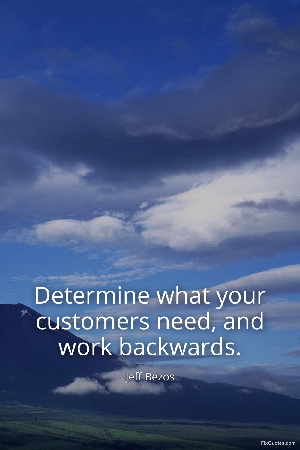Bezos, Jeff. "Determine what your customers need, and work backwards." FixQuotes. March 25, 2026. https://fixquotes.com/quotes/determine-what-your-customers-need-and-work-186325/.