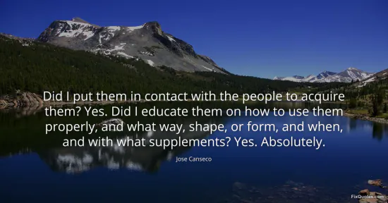 Canseco, Jose. (2026, January 15). Did I put them in contact with the people to acquire them? Yes. Did I educate them on how to use them properly, and what way, shape, or form, and when, and with what supplements? Yes. Absolutely. FixQuotes. https://fixquotes.com/quotes/did-i-put-them-in-contact-with-the-people-to-170580/