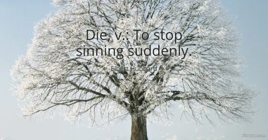 Hubbard, Elbert. (2026, January 18). Die, v.: To stop sinning suddenly. FixQuotes. https://fixquotes.com/quotes/die-v-to-stop-sinning-suddenly-16871/