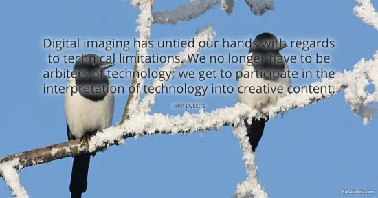 Dykstra, John. (2026, February 10). Digital imaging has untied our hands with regards to technical limitations. We no longer have to be arbiters of technology; we get to participate in the interpretation of technology into creative content. FixQuotes. https://fixquotes.com/quotes/digital-imaging-has-untied-our-hands-with-regards-146042/