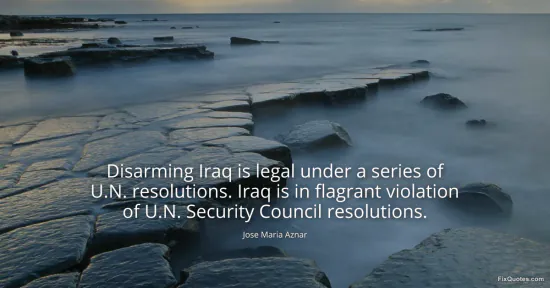 Aznar, Jose Maria. (2026, January 16). Disarming Iraq is legal under a series of U.N. resolutions. Iraq is in flagrant violation of U.N. Security Council resolutions. FixQuotes. https://fixquotes.com/quotes/disarming-iraq-is-legal-under-a-series-of-un-126625/