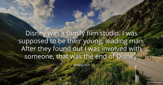 Kirk, Tommy. "Disney was a family film studio. I was supposed to be their young, leading man. After they found out I was involved with someone, that was the end of Disney." FixQuotes. January 15, 2026. https://fixquotes.com/quotes/disney-was-a-family-film-studio-i-was-supposed-to-131504/.