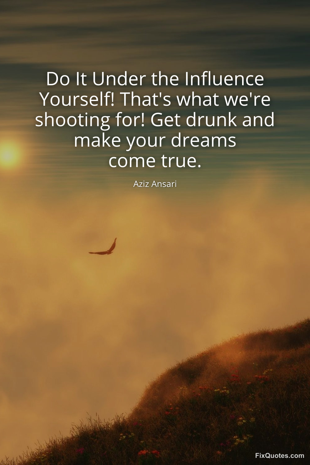 Ansari, Aziz. (2026, January 17). Do It Under the Influence Yourself! That's what we're shooting for! Get drunk and make your dreams come true. FixQuotes. https://fixquotes.com/quotes/do-it-under-the-influence-yourself-thats-what-38541/