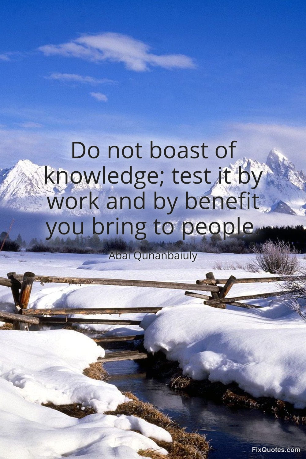 Qunanbaiuly, Abai. (2026, February 14). Do not boast of knowledge; test it by work and by benefit you bring to people. FixQuotes. https://fixquotes.com/quotes/do-not-boast-of-knowledge-test-it-by-work-and-by-185304/