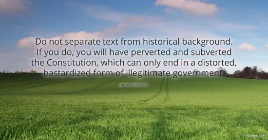 Madison, James. (2026, January 15). Do not separate text from historical background. If you do, you will have perverted and subverted the Constitution, which can only end in a distorted, bastardized form of illegitimate government. FixQuotes. https://fixquotes.com/quotes/do-not-separate-text-from-historical-background-31810/