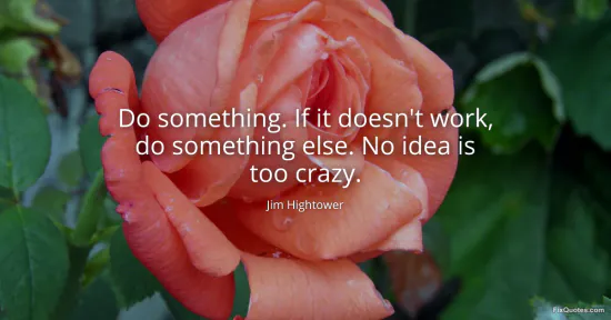 “No idea is too crazy” isn’t a celebration of randomness; it’s a challenge to the narrow imagination imposed by institutions. When the rules are written to keep you losing, “reasonable” often just means “approved by the people who benefit.” Hightower, a populist voice with Texas roots and a long history of taking shots at corporate and political elites, is telling activists to widen the tactical menu: strike, boycott, run for office, crash the narrative, build parallel systems. The quote works because it treats hope as a verb - and strategy as something you learn by doing, not waiting.