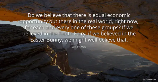 Weld, William. (2026, February 18). Do we believe that there is equal economic opportunity out there in the real world, right now, for each and every one of these groups? If we believed in the Tooth Fairy, if we believed in the Easter Bunny, we might well believe that. FixQuotes. https://fixquotes.com/quotes/do-we-believe-that-there-is-equal-economic-91586/