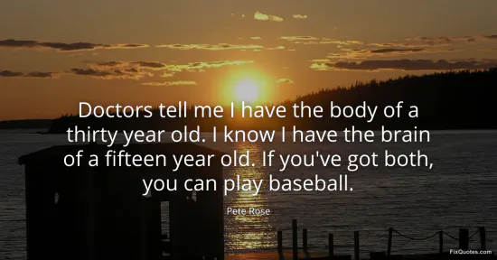 Rose, Pete. "Doctors tell me I have the body of a thirty year old. I know I have the brain of a fifteen year old. If you've got both, you can play baseball." FixQuotes. January 16, 2026. https://fixquotes.com/quotes/doctors-tell-me-i-have-the-body-of-a-thirty-year-89607/.