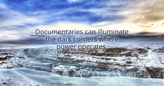 Gibney’s line flatters the genre while quietly indicting the systems that require it. “Illuminate” is the PR-friendly verb every documentarian wants on a grant application, but the rest of the sentence turns that glow into a flashlight beam aimed at something skittish. Power, in this framing, isn’t just exercised in courtrooms or on debate stages; it “operates” in “dark corners” - back rooms, NDAs, lobbying shops, server logs, offshore accounts, friendly media pipelines. The darkness isn’t accidental. It’s a design feature.