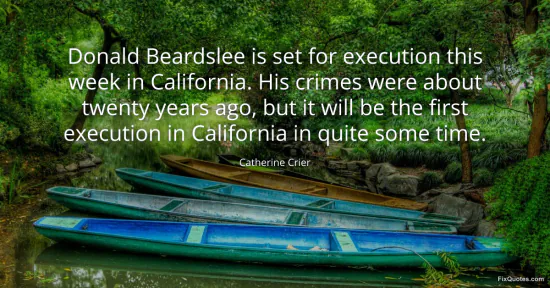 Crier, Catherine. (2026, January 17). Donald Beardslee is set for execution this week in California. His crimes were about twenty years ago, but it will be the first execution in California in quite some time. FixQuotes. https://fixquotes.com/quotes/donald-beardslee-is-set-for-execution-this-week-50644/
