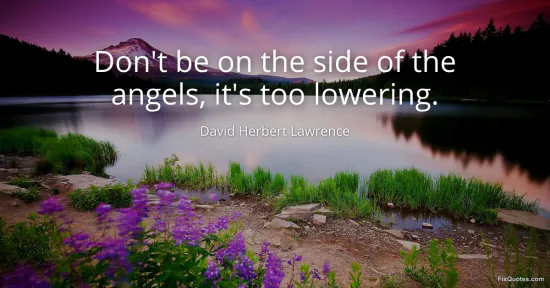 Lawrence, David Herbert. "Don't be on the side of the angels, it's too lowering." FixQuotes. January 18, 2026. https://fixquotes.com/quotes/dont-be-on-the-side-of-the-angels-its-too-lowering-6490/.