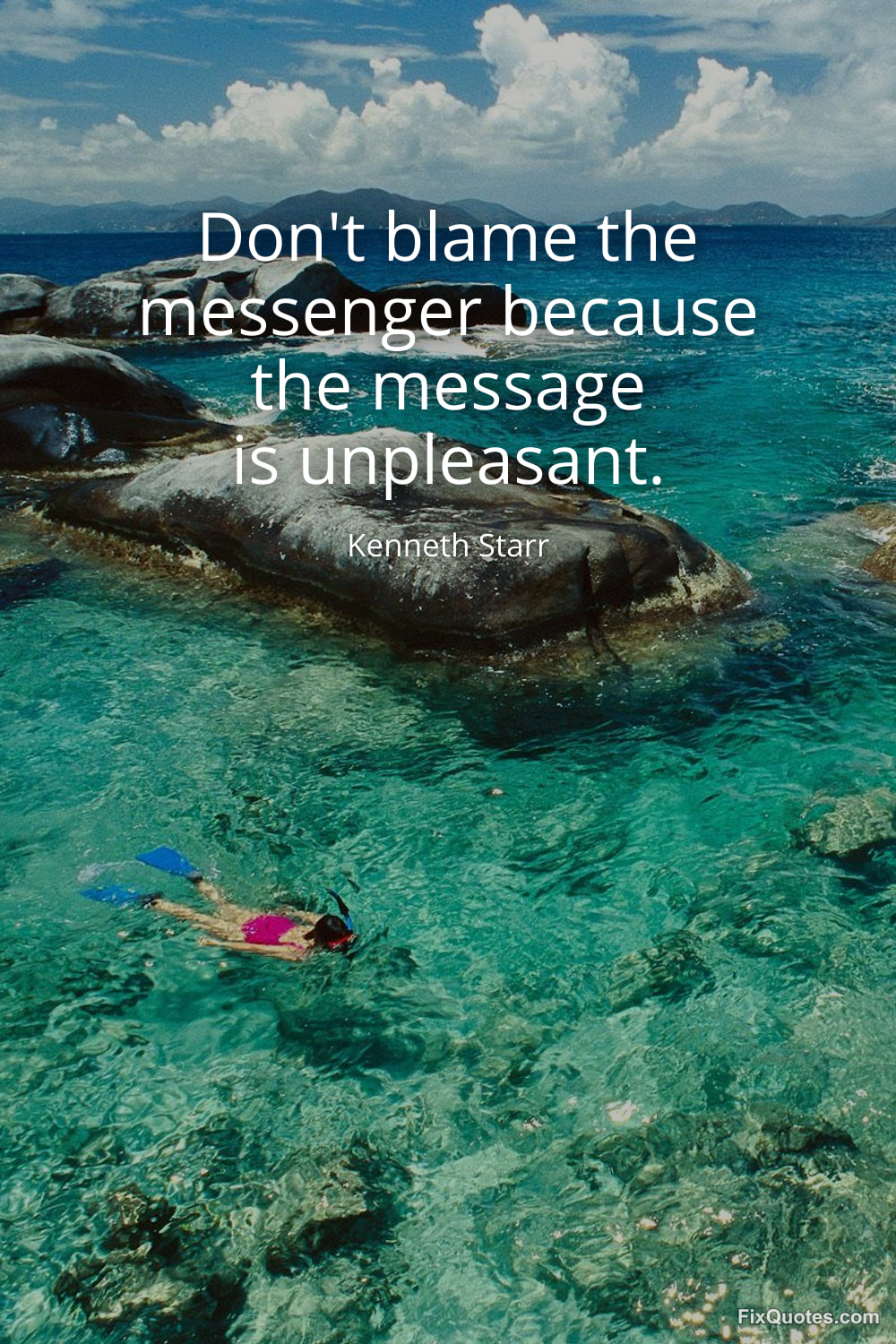 Starr, Kenneth. "Don't blame the messenger because the message is unpleasant." FixQuotes. January 16, 2026. https://fixquotes.com/quotes/dont-blame-the-messenger-because-the-message-is-92862/.