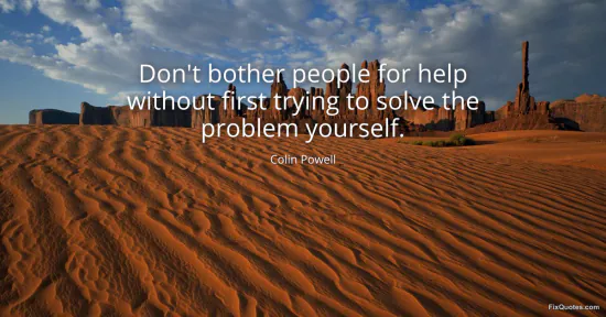 Powell, Colin. (2026, January 17). Don't bother people for help without first trying to solve the problem yourself. FixQuotes. https://fixquotes.com/quotes/dont-bother-people-for-help-without-first-trying-30646/