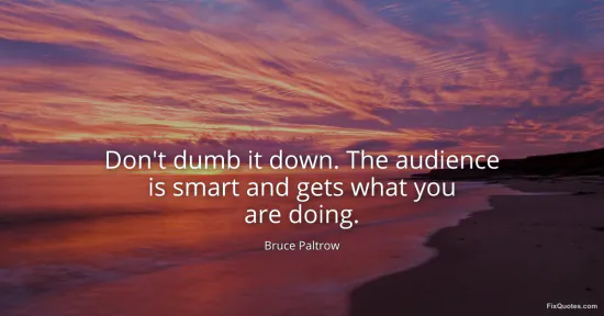 Paltrow, Bruce. (2026, January 17). Don't dumb it down. The audience is smart and gets what you are doing. FixQuotes. https://fixquotes.com/quotes/dont-dumb-it-down-the-audience-is-smart-and-gets-39773/