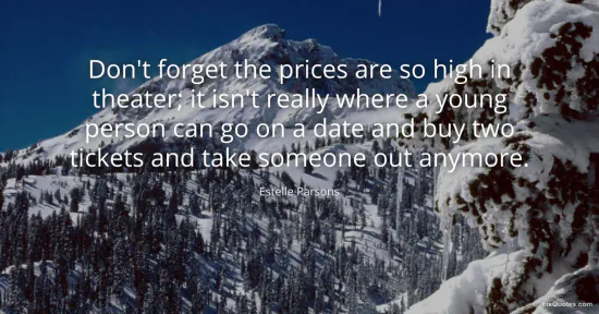 Parsons, Estelle. (2026, January 15). Don't forget the prices are so high in theater; it isn't really where a young person can go on a date and buy two tickets and take someone out anymore. FixQuotes. https://fixquotes.com/quotes/dont-forget-the-prices-are-so-high-in-theater-it-148912/