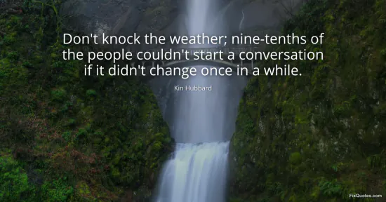 Hubbard, Kin. (2026, February 12). Don't knock the weather; nine-tenths of the people couldn't start a conversation if it didn't change once in a while. FixQuotes. https://fixquotes.com/quotes/dont-knock-the-weather-nine-tenths-of-the-people-32336/