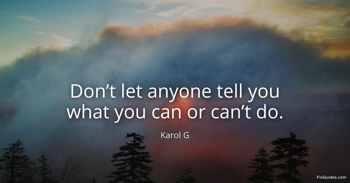 G, Karol. "Don’t let anyone tell you what you can or can’t do." FixQuotes. February 9, 2026. https://fixquotes.com/quotes/dont-let-anyone-tell-you-what-you-can-or-cant-do-185036/.