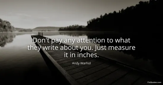 Warhol, Andy. (2026, January 15). Don't pay any attention to what they write about you. Just measure it in inches. FixQuotes. https://fixquotes.com/quotes/dont-pay-any-attention-to-what-they-write-about-14257/