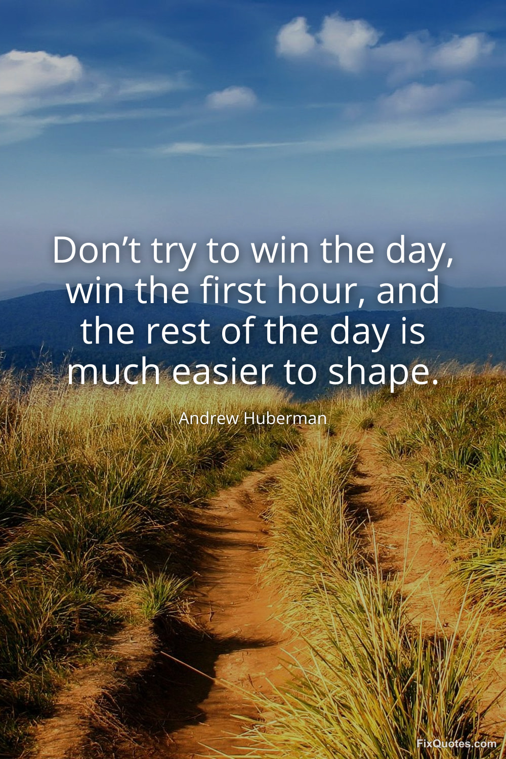 Huberman, Andrew. "Don’t try to win the day, win the first hour, and the rest of the day is much easier to shape." FixQuotes. January 24, 2026. https://fixquotes.com/quotes/dont-try-to-win-the-day-win-the-first-hour-and-184118/.