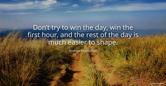 Huberman, Andrew. (2026, January 24). Don’t try to win the day, win the first hour, and the rest of the day is much easier to shape. FixQuotes. https://fixquotes.com/quotes/dont-try-to-win-the-day-win-the-first-hour-and-184118/